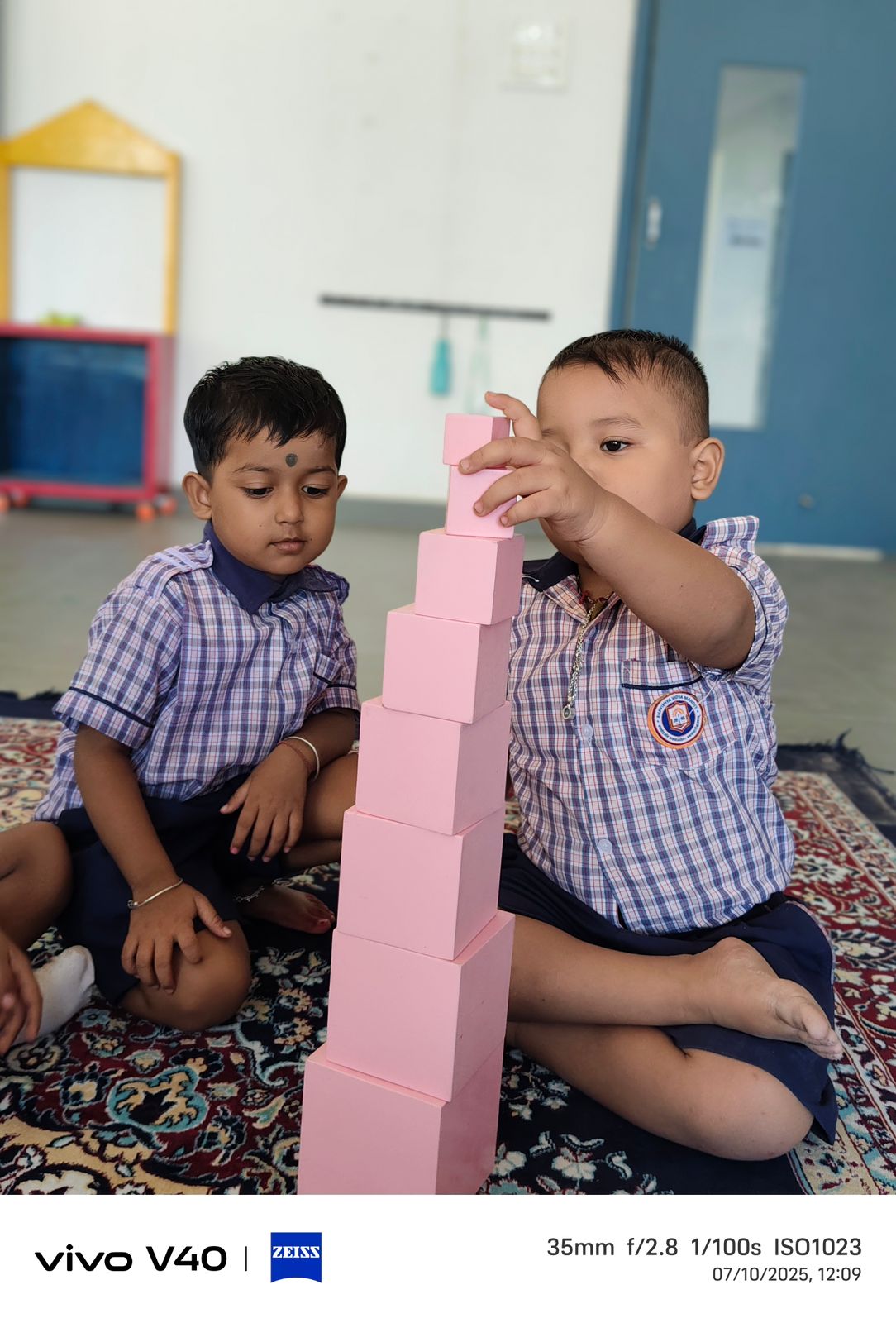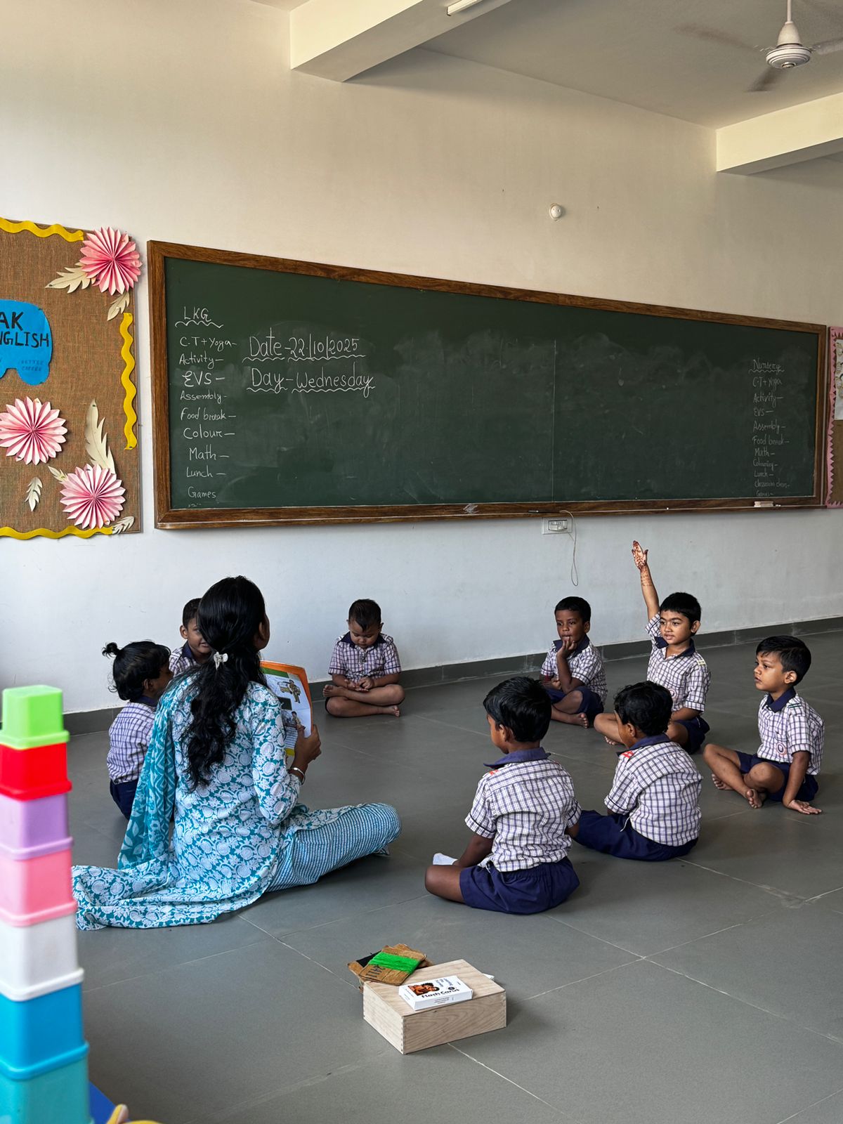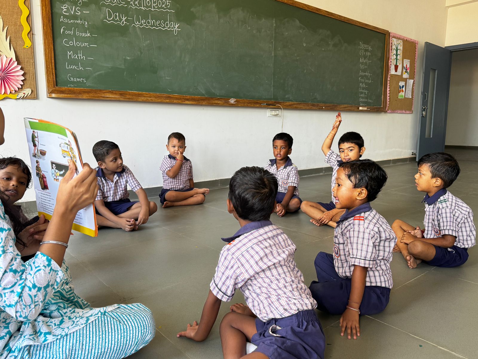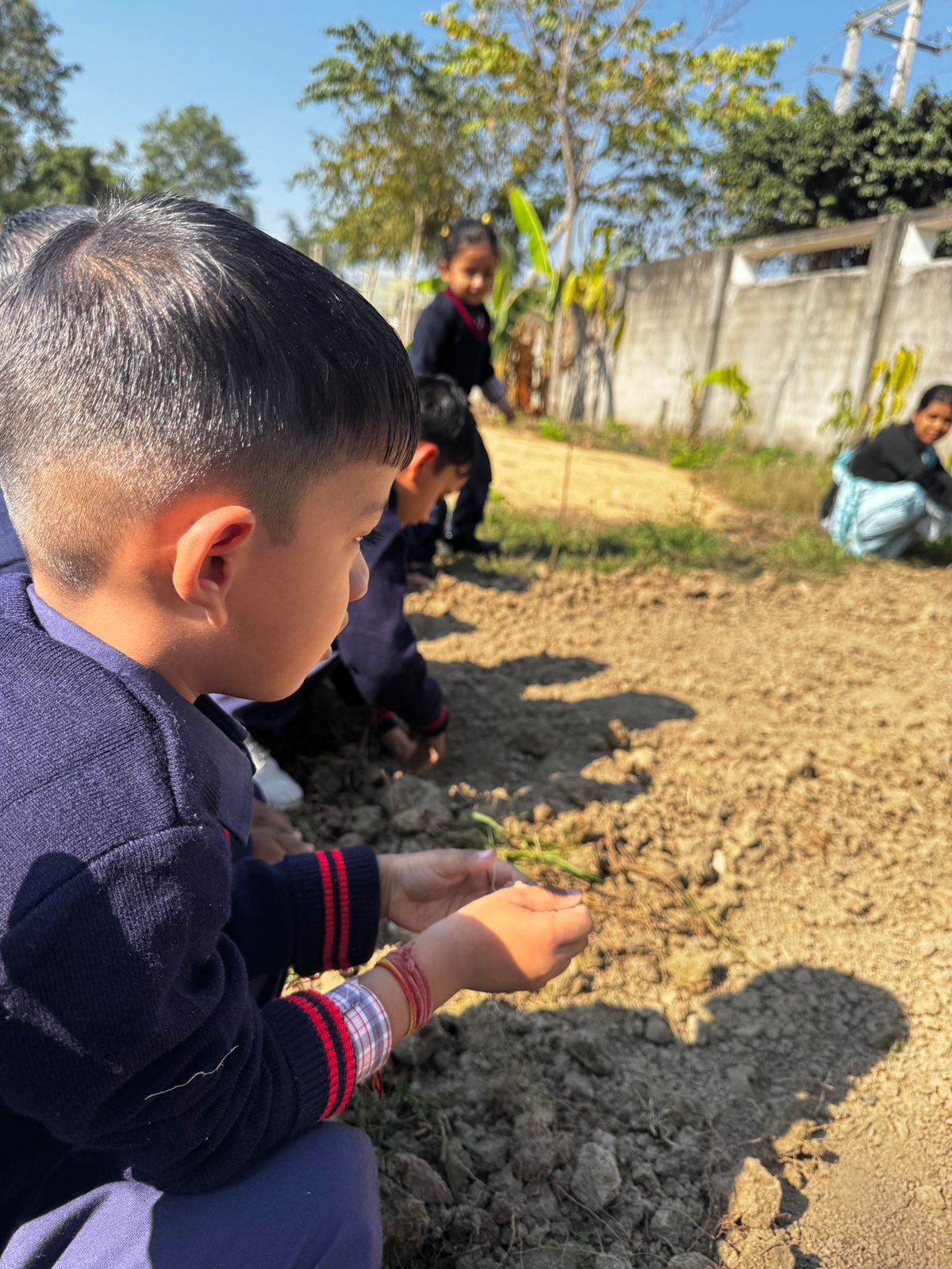 Students explore language, numbers, and nature with curiosity. Emphasis is placed on reading habits, early math, and moral stories that strengthen values.